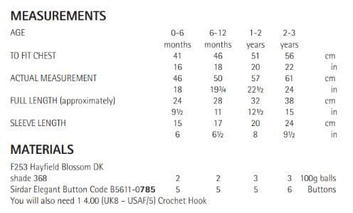 Hayfield Babies/Boys Jacket Crochet Pattern in Blossom Double Knitting 'DK' as a PDF Download. Please see second image for yarn amounts required.