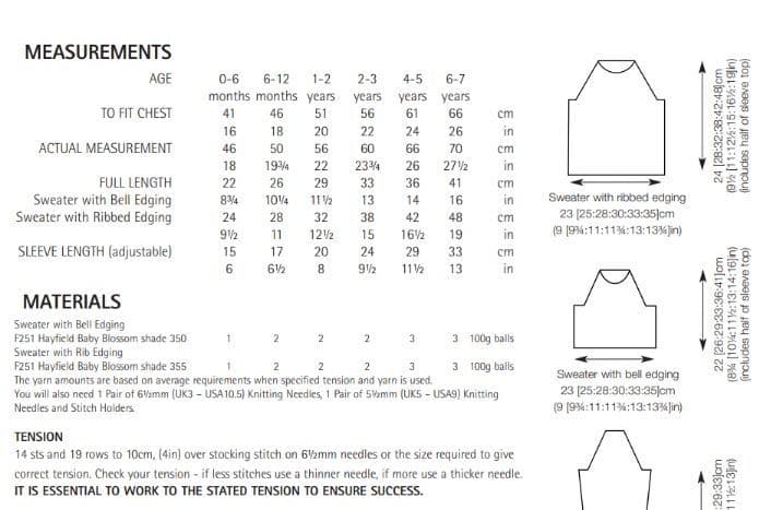 Hayfield Babies/Children's Sweaters Knitting Pattern in Blossom Chunky as a PDF Download. Please see second image for yarn amounts required.