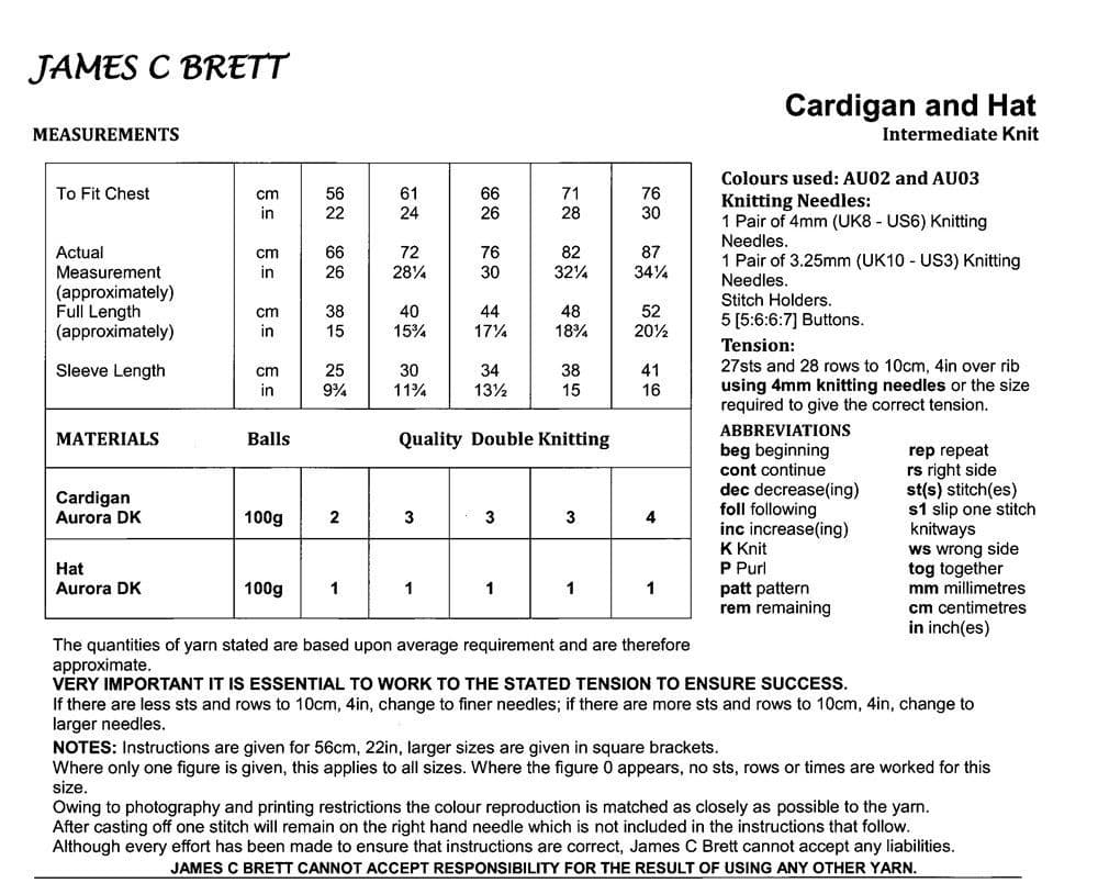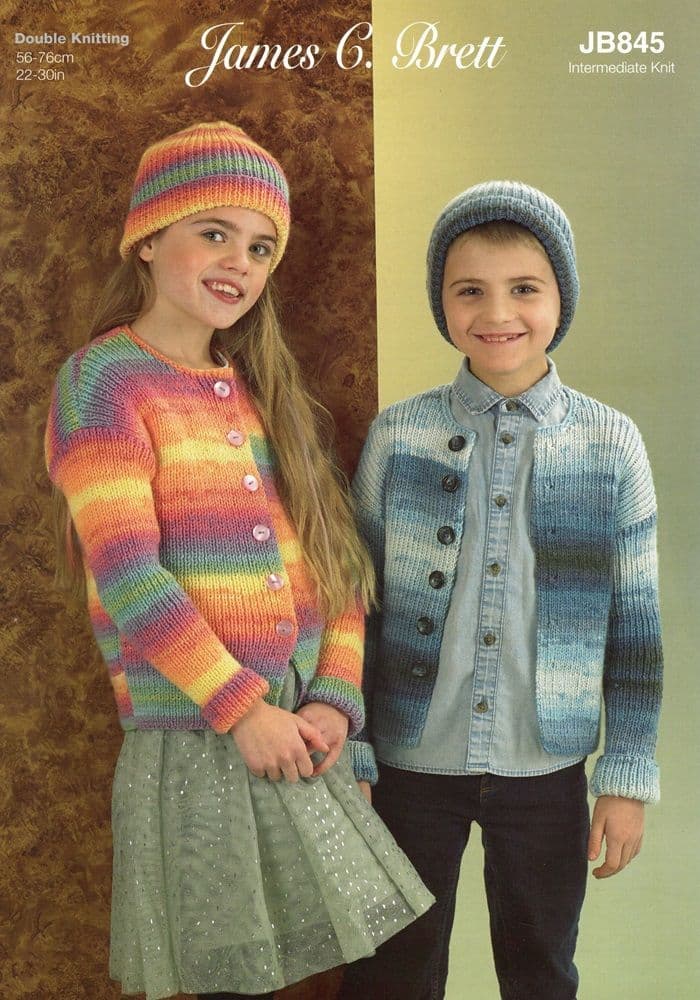 James C Brett Childrens Cardigan & Hat Knitting Pattern in Aurora DK