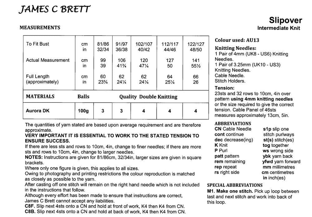 James C Brett Ladies Slipover Knitting Pattern in Aurora DK