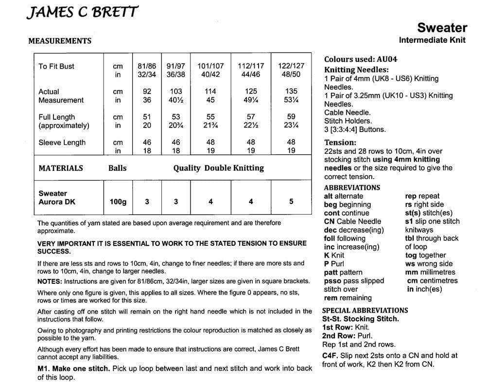 James C Brett Ladies Sweater Knitting Pattern in Aurora DK