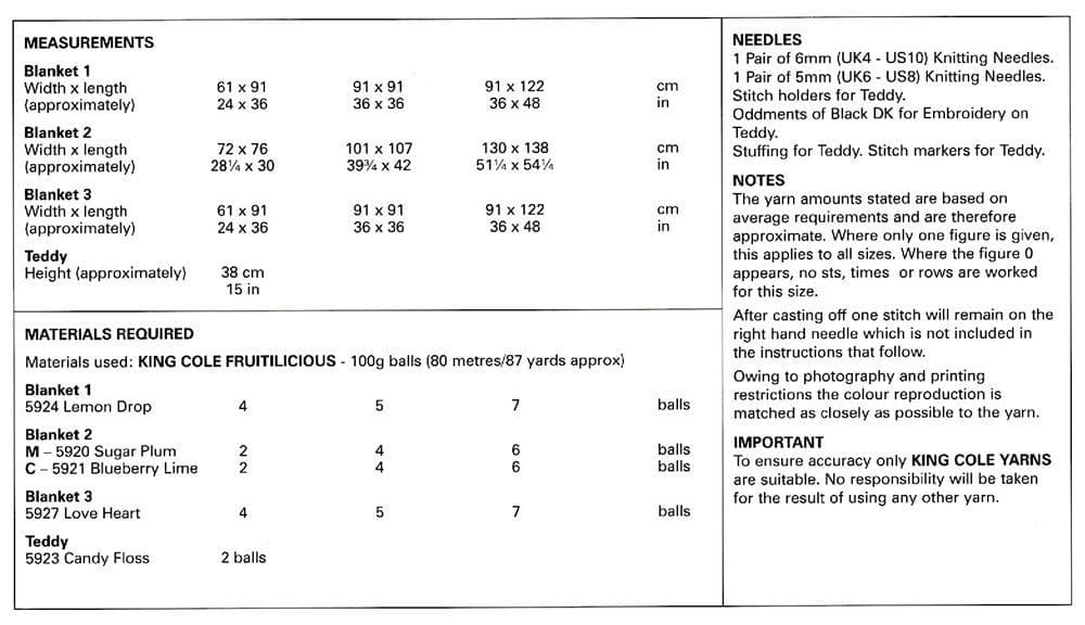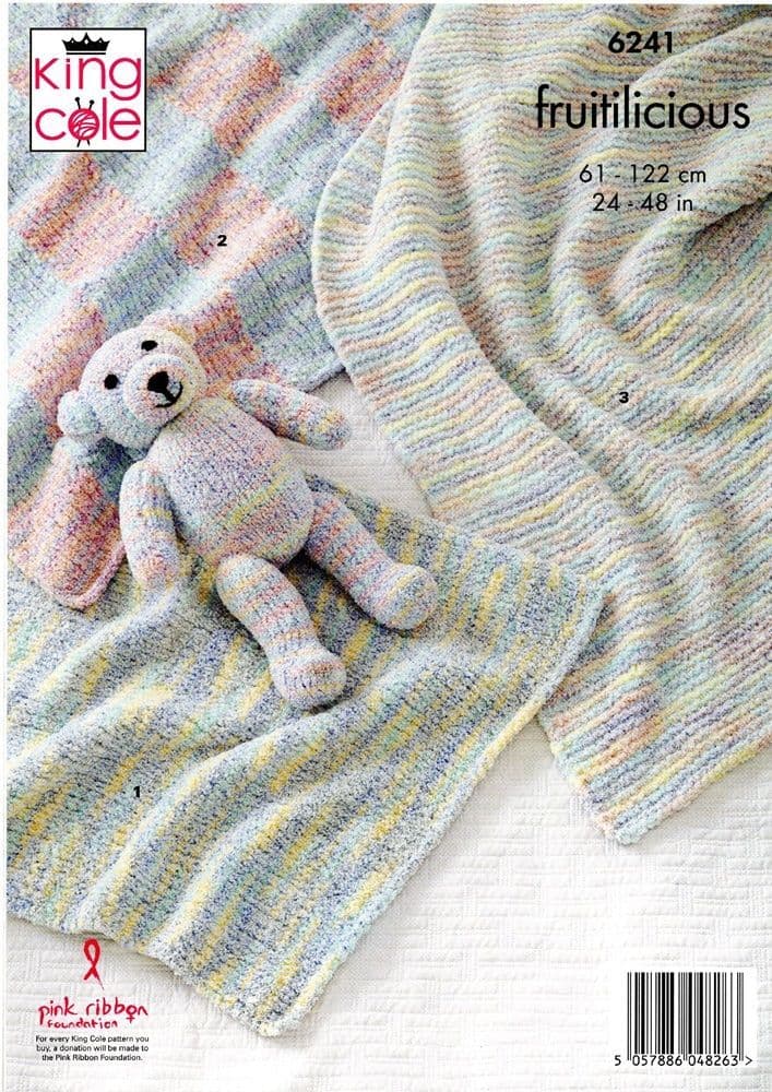 King Cole Blankets & Teddy Knitting Pattern in Fruitilicious Chunky