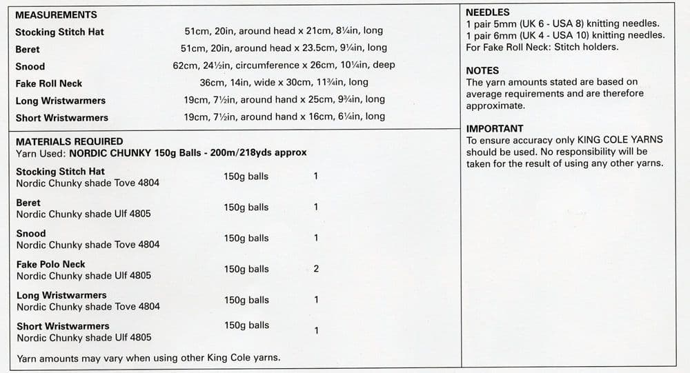 King Cole Ladies Accessories Knitting Pattern in Nordic Chunky