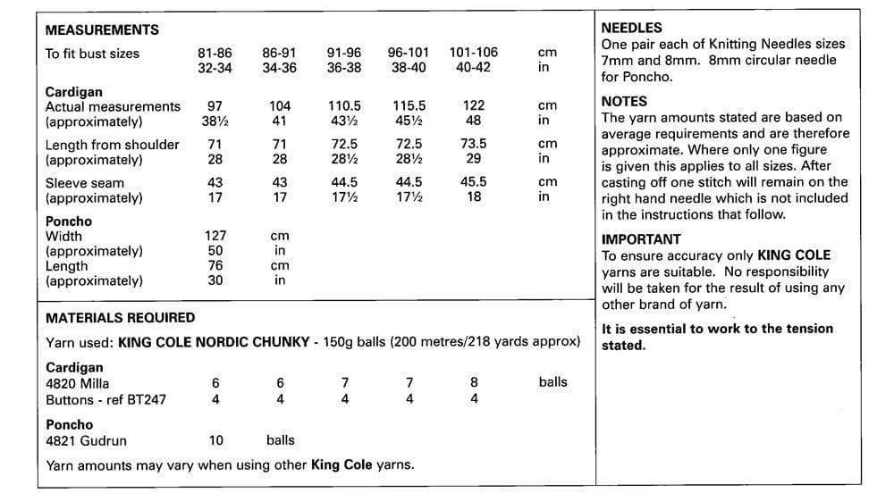 King Cole Ladies Cardigan & Poncho Knitting Pattern in Nordic Chunky