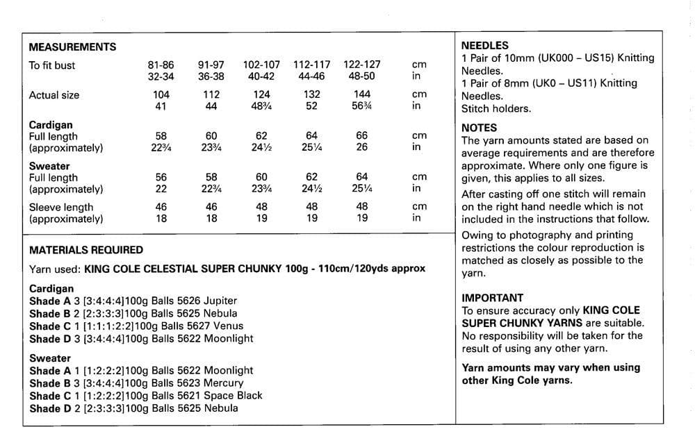 King Cole Ladies Cardigan & Sweater Knitting Pattern in Celestial Super Chunky