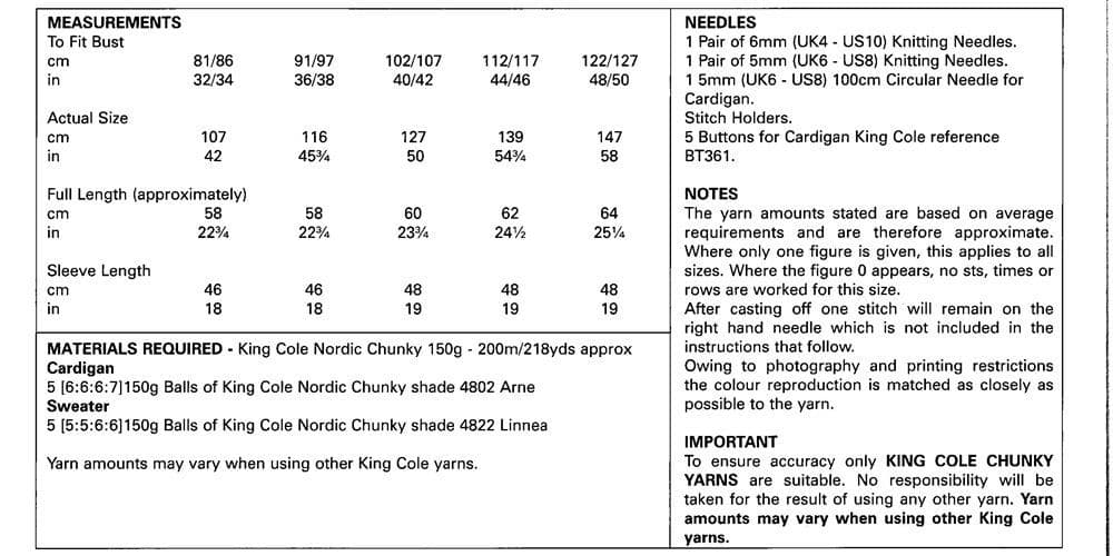 King Cole Ladies Cardigan & Sweater Knitting Pattern in Nordic Chunky