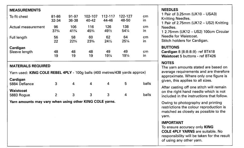 King Cole Ladies Cardigan & Waistcoat Knitting Pattern in Rebel 4ply