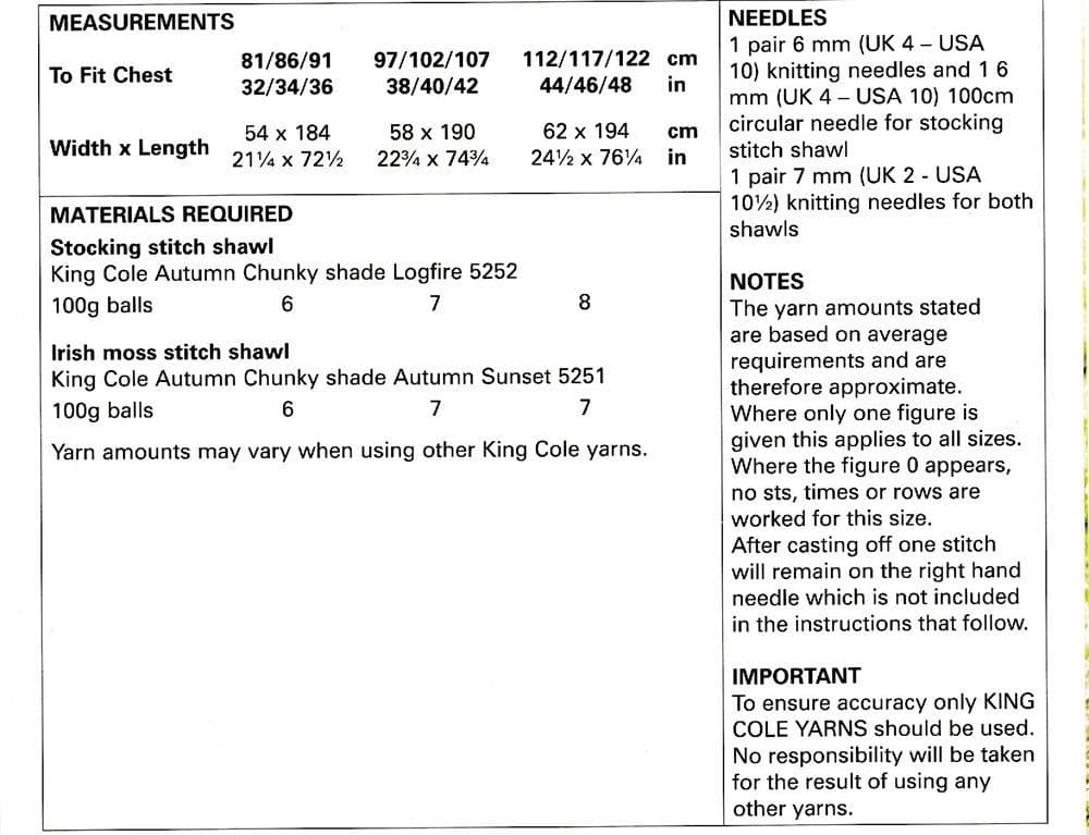 King Cole Ladies Shawls Knitting Pattern in Autumn Chunky