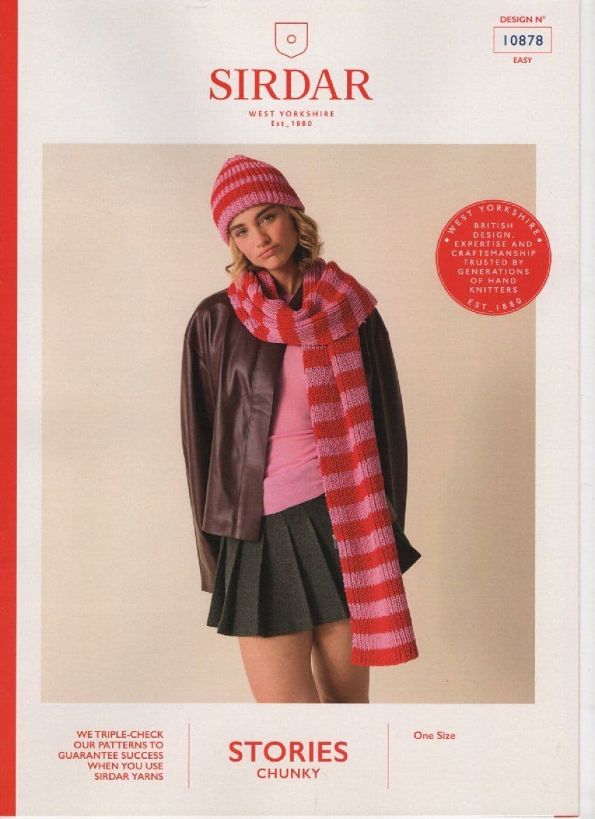 Sirdar Ladies Hat & Scarf Knitting Pattern in Stories Chunky (10878)