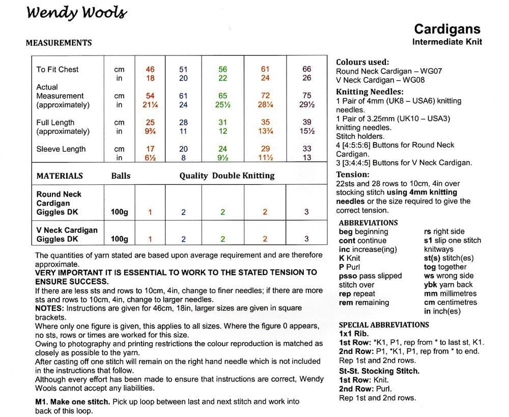 Wendy Girls Cardigans Knitting Pattern in Giggles DK